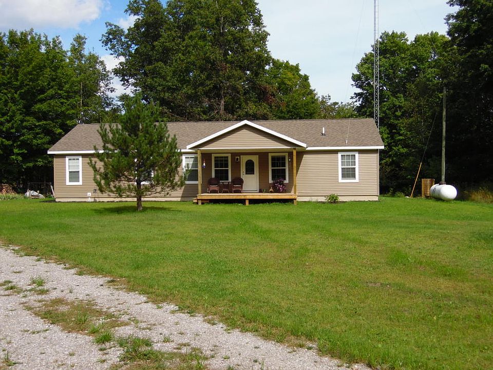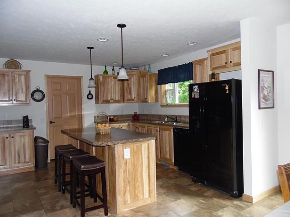 Beautiful, new in 2015 home with open floor plan. 3 bedroom with walk-in closets. 2 full baths, master bath has large soaking tub & double sinks. Hickory Cabinets, wood burning fireplace, central air & 5' crawl for extra storage all sitting on 40 acres of rolling hardwood forest with food plots & trails, & pond, 30 x 30 pole barn with 100 amp service plus 30 amp plug & slab for RV hookups. ($5,000) Booster antenna for cell, TV & internet service. 200 amp to house. 6 years on transferable home warranty.
