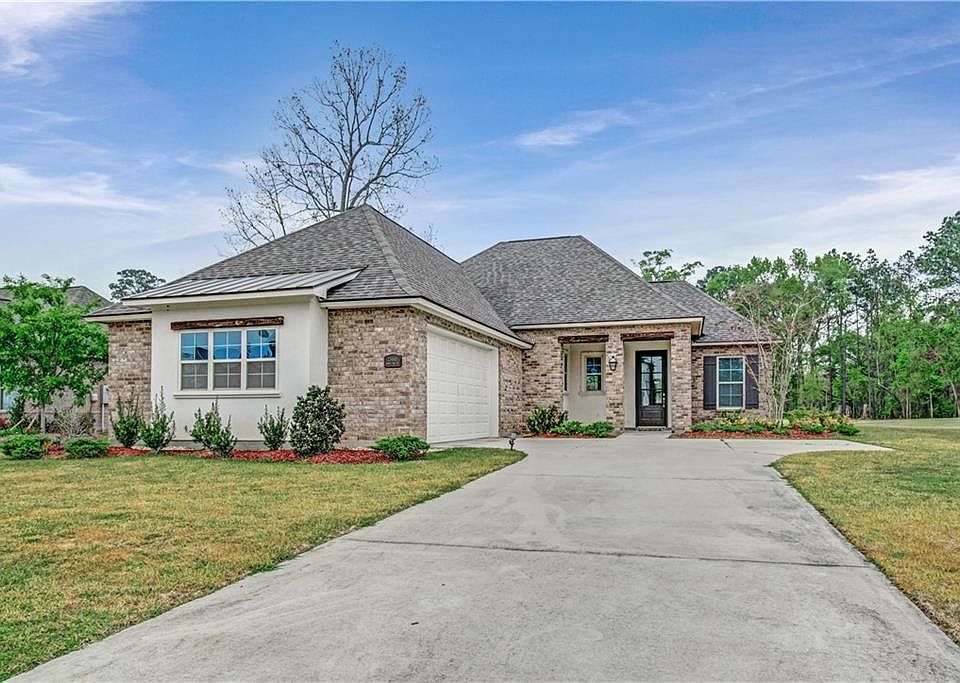 On the 11th hole! Such an easy commute to NOLA & BR! Enjoy the Carter Plantation community w/ community pool, clubhouse, & exquisite golf course. Home offers open floorplan for entertaining, abundance of natural light, 3 beds, 2 bths, office, exposed cypress beams, kitchen w/ ss appl, gas stove, granite, island, wall oven, walk-in pantry, & custom cabinet, primary en-suite w/ soaking tub, custom shower, dbl vanity, walk-in closet, back porch is ready for an outdoor kitchen w/ gas hook-up & wired for TV!