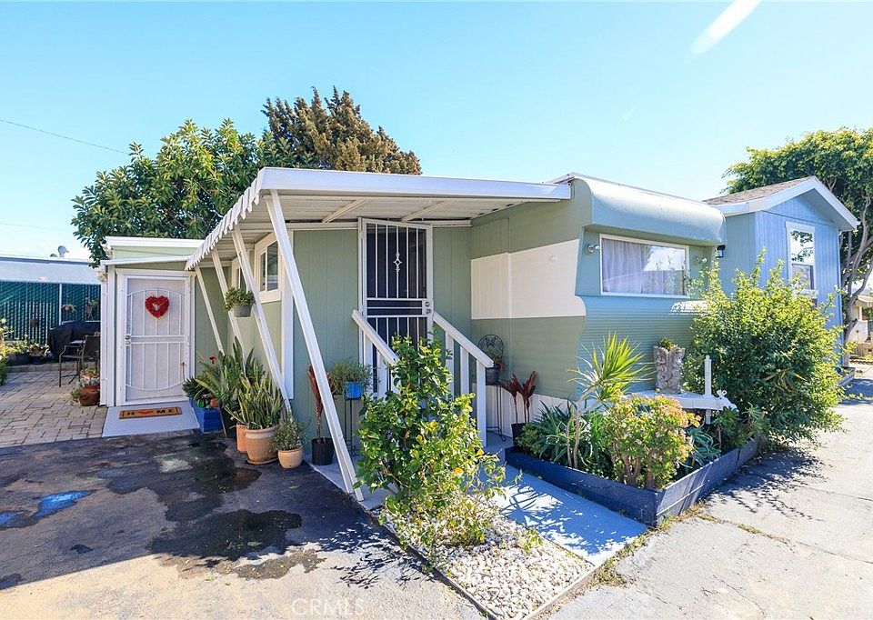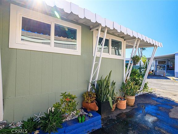 PRICE REDUCED!!! Just 2 miles from the beach with a low monthly space fee of $1,050 you will not find a better deal in the Beach Cities. There is so much potential at this location whether for yourself, your in-laws, or as a rental. Tucked away in a serene spot within the 55 and over community of Cresta Mobile Park you will find this delightful Redondo Beach residence. Surrounded by established landscaping and hardscaping, the property boasts a sweet patio made of pavers, creating an ideal space for basking in the soothing ocean breeze and sunshine. The inviting front porch entry greets you home, plus there is an additional sunny entrance near the dedicated parking spot. Step inside to discover an adorable mobile home that has undergone significant expansion while preserving its vintage charm. The sunny foyer leads to 2 versatile rooms with closets, perfect for use as living space, a home office, or a welcoming guest bedroom. Your primary bedroom provides a cozy atmosphere with built-in cabinetry, complemented by an adjacent bonus room that serves as a delightful dressing area. The bright and breezy kitchen comes complete with abundant cabinetry, an upgraded faucet, and stainless steel appliances, including a gas range and refrigerator. For added convenience, the stackable washer and dryer are included. The bathroom is appointed with a fresh white vanity, medicine cabinet, and shower enclosure, along with a separate water closet for added privacy. Additional smart upgrades made to the home include wide-plank flooring, dual-pane vinyl windows, fresh paint, and a ceiling fan, ensuring both comfort and style. A shed out back under the rubber tree provides extra storage solutions for your belongings. The space rent includes utilities and WiFi in the recreation room which can be reserved for social events. This community offers unparalleled convenience, with most amenities located within a mile and an impressive Walk Score of 74 out of 100, signifying its "Very Walkable" status. Enjoy easy access to restaurants, shopping, the pharmacy, grocery store, Starbucks, parks, the dog park, King Harbor Marina, and the iconic beaches and piers of both Redondo Beach and Hermosa Beach. It is only a 5 minute ride to the beach (less than 2 miles) from here and 10 minutes to the freeway. Do not miss the opportunity to make this darling mobile home your tranquil retreat in this 55+ development within the exclusive South Bay beach cities.