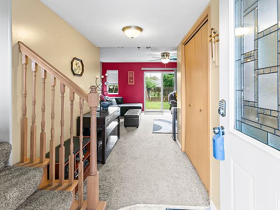 Beautifully maintained home. Flat lot. Open floor plan main floor. Laundry upstairs. Heated garage. Large walk-in closet in primary bedroom with small window.