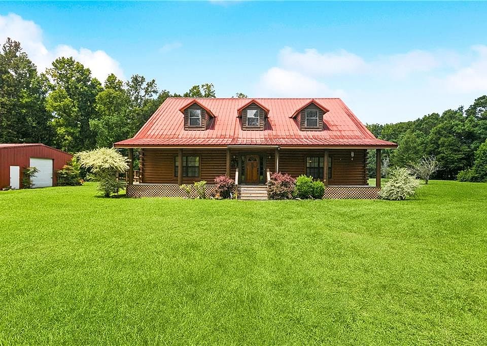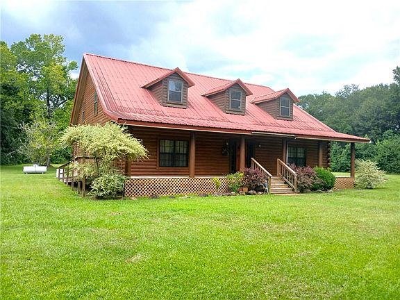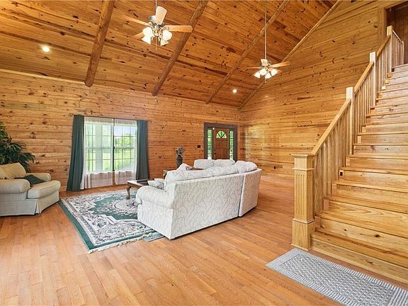 This Amazing Log Cabin has exceptional quality in craftsmanship throughout! The living area boost Cathedral Ceilings that are sure to impress and provide a spacious feel. The kitchen would make any Chef proud with the amount of workable counterspace that includes an oversized island with its own sink for easy food prep. The primary suite has a huge closet with plenty of storage space that connects to the primary ensuite with double sinks, oversized jetted tub, and shower. Upstairs you will find an expansive loft that could double as an office, bedroom, etc. The laundry room offers 21 ft of space that include built-in cabinets for lots of storage and a half bath with easy rear porch & kitchen access. Some of the other amenities include a whole house generac generator, and a 1200 sq ft storage/workshop, pond on 10.04 Acres of land - plus much more!