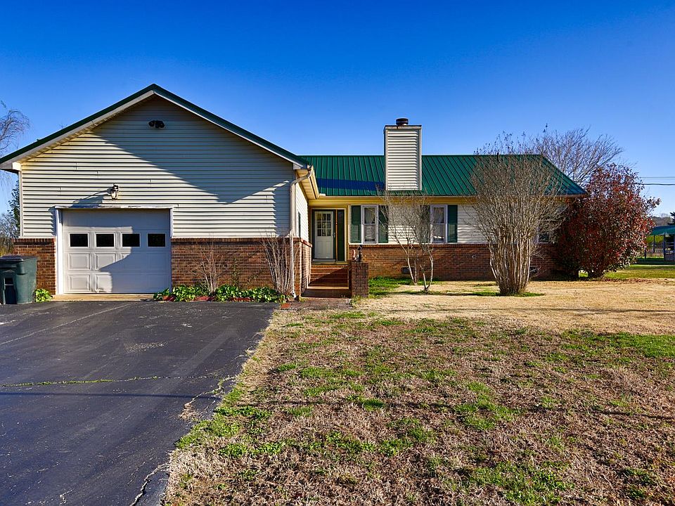 Great mini farm of 5 level acres w/ 28x40 shop including office area. Add your fencing and it's ready for livestock. The brick & vinyl home boasts 1690 SF, 3 BR/2 BA, spacious family room w/ laminate flooring & wood walls & ceiling, LR/DR combination w/ laminate flooring & gas log FP, master suite w/ laminate flooring & private bath w/ double vanities + laundry room w/ laminate flooring. Exterior features incl metal roof, 1-car attached garage & paved driveway + a cove shed large enough for RV.