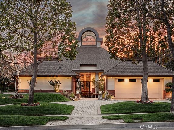 Want to own an Award-Winning Home? Well, here’s your chance. This 1982 custom built Lewis Home is one of a kind. Designed by renowned architect, Barry Berkus, titling the home “Style Setter 80’s”, this trendsetting design had many foreshadowing concepts that were not yet seen in residential design. Everything from the large skylights, dual primary suites on the main level, to the column supported loft. What makes this home most unique is the 30-foot ceiling finished with a copper-topped cupola. Almost kept to its original design aesthetics, this home has had some great updates to highlight its intended design. The beautiful wood railings, stuccoed art-deco style fireplace, and large pillars are all design aspects you won’t miss. This is a three-bedroom home, all rooms with private bathroom suites. The third bedroom is located at the front of the home as a detached room with a bathroom & walk-in tiled shower. The main home is a large open concept with white marble flooring and a floating staircase leading to the open loft overlooking the living area. There’s a media room with a large screen and projector for the perfect movie night. A formal dining area with a wrap-around fireplace. The updated kitchen with Wolf appliances and a step down wet-bar are perfect for entertaining. Enjoy your morning coffee in the breakfast nook off the kitchen, created to feel like a glassed in sunroom overlooking the beautiful private backyard. Each room in the home has a large slider door leading you to the beautifully landscaped yard with private patios and courtyards throughout. This half acre lot includes a large pebble tec pool, a tea gazebo perfect for your morning yoga or a private massage. The large lawn area is lined with fruit trees. The yard also includes a pool house with an outside private shower and bathroom behind it, perfect for pool parties. This home is a must see and a piece of Upland history you don’t want to miss.