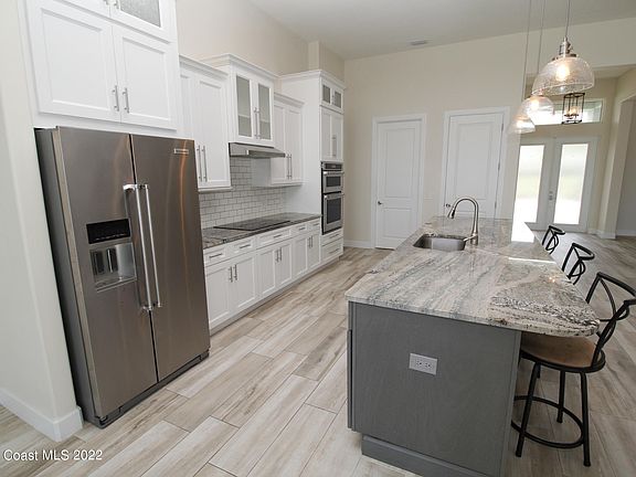 Come view this stunning pool home located on the shores of the Indian River Lagoon. The features of this home include four bedrooms, three bathrooms, living room, dining room, inside laundry room, eat-in kitchen with quartz counter tops, breakfast bar, and stainless steel appliances. The master has a soaking tub, walk-in shower and walk-in closet. There is also a covered lanai with a sparkling pool with gorgeous views of the river. Basic lawn maintenance and pool care included in the rent.