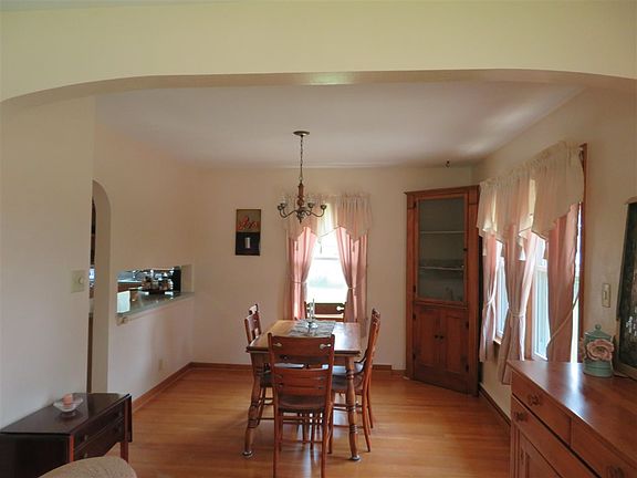 Nicely landscaped raised ranch with walk-out minutes from the bypass and town. Three bedroom updated bath, nice size eat-in kitchen, formal dining room , hardwood floors and a large living room complete the main floor of living. The lower walk-out consists of the laundry area, a second full bath, large family room with bar and fireplace. A bonus work area 12 x 10 is presently used as a work shop. The 1.5 stall garage is attached to the lower level. Storage abounds in this country home. This home has replacement windows, a six year old furnace and newer A/C. The upstairs fireplace is being sold as is. Some window treatments do not stay. Privacy abounds with many mature plantings. Appliance filled the present owner wants to make your move pleasant and hassle free.