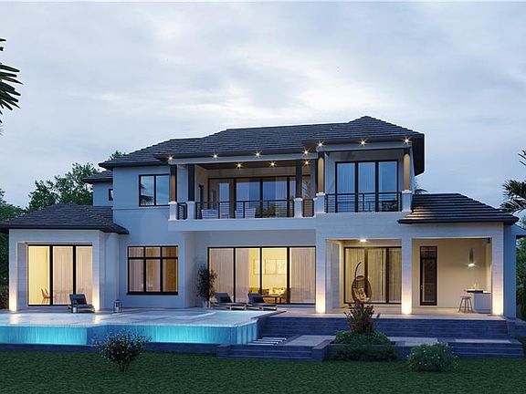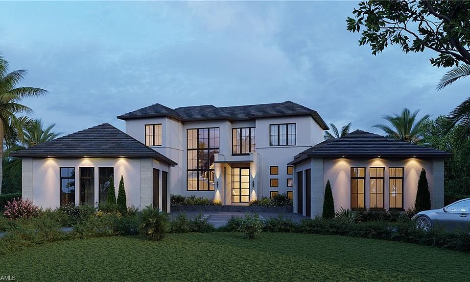 Unveiling a timeless architectural masterpiece in Royal Harbor, designed by award winning renowned local architect, Stofft Cooney. East meets West in this contemporary waterfront home. Situated on an oversized 0.40acre lot with 100ft new Sea Wall this home boasts 5500sqft under air and over 7700sqft of covered living. Unrestricted boating access, located within walking or biking distance to downtown Naples and the white sand beaches. Residence includes 4 bedrooms + Study/5th bedroom, 6.5 baths, 4 car garage, 2 primary suites, glass pivot front door, double height feature window, gourmet kitchen with high end appliances, service kitchen, elevator, floating open staircase with glass railings, Lutron system for lighting and shade control, Elan Smart Automation system, automated roll down privacy shades, AC garages, 1,000 gal propane tank, whole house generator, large format porcelain tiles and light oak flooring throughout & much more. The immense outdoor living area includes, full outdoor kitchen protected by automated roll down screens, shutters, Marbella Limestone accents, a fire pit and a resort styled pool with a large infinity ledge over looking the bay. Completion Fall 2024
