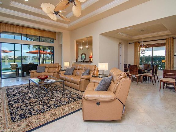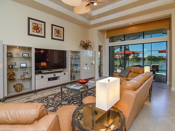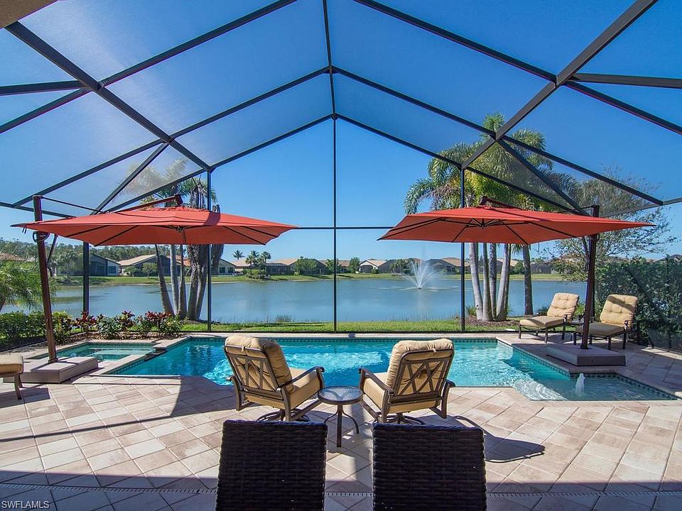 Beautiful Lakefront pool home built by Toll Brothers in 2014 located in the desirable Bonita Lakes Community. The residence boasts copious upgrades throughout the home, enjoy quality accents to details. The exterior has an expanded driveway on the side for easy access into the garage which has shelving on the ceiling and is still spacious enough to fit 2 cars. The lush landscaping gives the pool area natural privacy. The home's exterior has been recently painted with high-quality paint and the exterior and roof are pressure washed annually. Inside you will find 3 bedrooms and a den with wood floors, diagonal tile throughout the main area, crown molding, upgraded cabinets, granite tops, stainless steel appliances, high tray ceilings, plantation shutters, upgraded lighting, the spacious patio is great for entertaining while soaking in the pool and spa overlooking the spectacular lake view with water feature whether bird watching in the morning or catching the stunning sunsets in the evening this will certainly be the go-to spot for you and your guests.