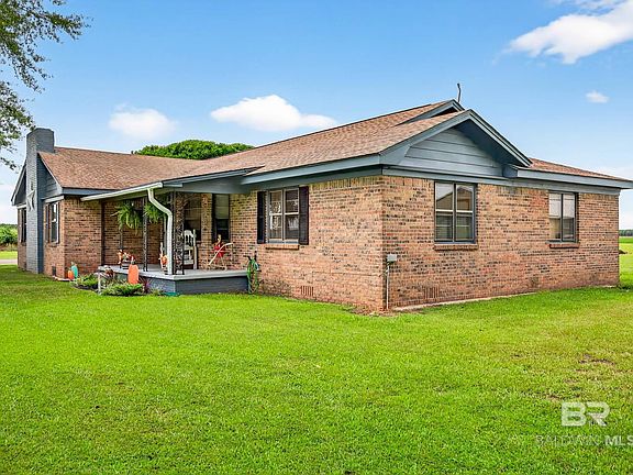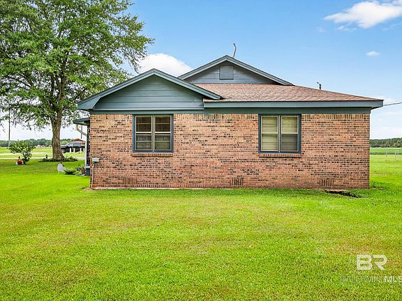 Peaceful Country 2-Acre Homestead Surrounded by Open Fields-Charming brick home featuring a newly renovated tile bathroom. Kitchen and laundry updated with modern light fixtures and LPV flooring. Beautiful original heart pine walls, newly slicked ceilings, and a mix of original hardwood, tile, LPV, and stunning wood plank laminate in the foyer. The spacious living room boasts a cozy gas-burning fireplace with potential to convert back to wood-burning. Well-maintained HVAC system (2018). A cozy area/sunroom leads to the converted garage—now an income-producing bait shop—heated and cooled by a mini split (2022). This versatile space offers endless possibilities for the new owner. Exterior updates include complete replacement of soffit/ fascia boards with a fresh coat of paint in April of this year (2025). This home has a 30 yr. durable three-tab architectural roof (17 yrs old). The property features mature nut and fruit bearing pecan, pear, kumquat, and also oak and magnolia trees, plus a fenced area (2023) for pets. An old barn sits beside a 24x24 open slab ready for your vision.Located in the Baldwin County School District and just a short drive to the Alabama River, Historic Fort Mims, Lake Patterson, and Smith Lake.Call your favorite agent today to SHOW you around! Buyer to verify all information during due diligence.