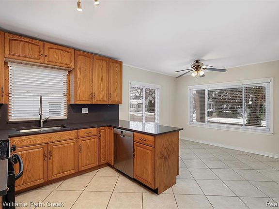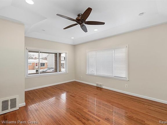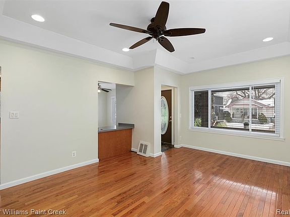 Located in the heart of Hazel Park, this updated colonial offers easy access to dining, shopping, parks, and two major freeways for a convenient commute. The home has been freshly painted and features quality finishes throughout along with central air conditioning, recessed lighting, ceiling fans and a covered front porch. The spacious kitchen includes brand new quartz countertops, ample cabinet storage, under cabinet lighting, wine rack, and dedicated work areas with an attached dining space. The appliances include a gas range, built-in microwave, dishwasher, and a French door refrigerator. Hardwood flooring runs throughout the first and second floor including the three well sized bedrooms. Each level features a full ceramic tiled bathroom. The primary suite is incredibly spacious and includes soaring ceilings, a private bathroom, walk-in closet with shelving, room for a sitting area, and a covered balcony. The finished basement offers a recreation area, second refrigerator, full bathroom with dual shower heads, laundry room, and two additional rooms ideal for office, workout, or hobby use. The fully fenced backyard provides a large deck for outdoor living. Partial garage use is available, and the driveway offers parking for up to four vehicles.