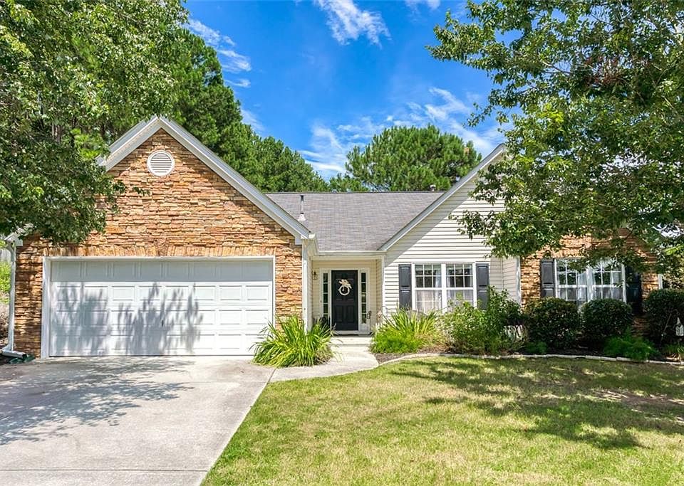 Welcome Home to this charming three-bedroom, two-bathroom ranch home located in highly desirable Buford! This single-story gem boasts a stacked stone exterior and a well-manicured front yard, inviting you in with its warm and welcoming curb appeal. The ranch-style design ensures easy accessibility and one level living. The family room has vaulted ceiling and cozy wood burning fireplace with gas starter. Eat-in kitchen with stainless steel appliances, including refrigerator, and a separate dining room. The oversized master suite has a sitting room/office and en-suite with soaking tub, separate shower, double vanity, and separate toilet room. Flooring is laminate and hardwoods throughout with the only carpet in the home being in one of the two secondary bedrooms. Newer roof and hot water heater. Step outside onto the covered back patio, where you can unwind and enjoy the serene outdoors complete with seasonal landscaping including flowering shrubs, jasmine, and wisteria. The private backyard presents wonderful possibilities for gardening, relaxing, and entertaining. Swim/Tennis community with sidewalks. Lanier school district. Close to Lake Lanier, parks, and both downtown Sugar Hill and downtown Buford, restaurants, amphitheater, shops, and entertainment. Taxes reflect senior exemption. Welcome Home!