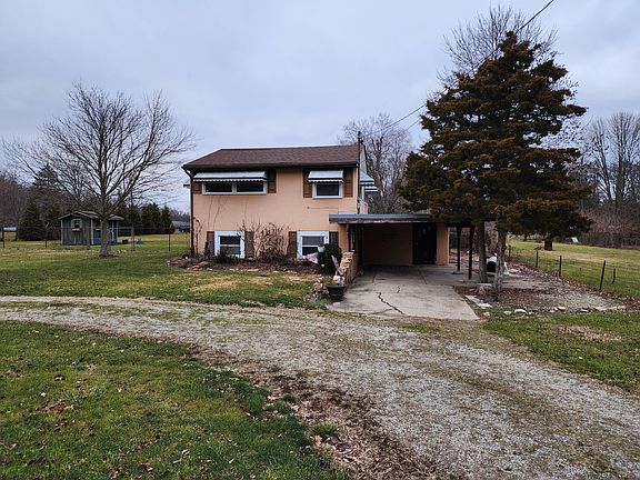 This charming property is located just 3 miles north of Yellow Springs offers the convenience of State Route 68, but the peace and quiet of living in the country. The home is located on a full acre of land (two separate .5 acre lots 1001100011101020 & 1001100011101019), with a fully fenced backyard. From the front you can see the U shaped driveway and carport and in the back there is a shed and fenced in garden plot. Once you step into the home you have a finished bedroom area that just needs a closet or wardrobe added. You also have the large bathroom and an unfinished area for storage or much potential to be converted into additional living space or a host of other possibilities. Upstairs you will find the large kitchen, living area and a bedroom. There is fresh paint on many of the walls. So much potential for finishing touches, additions or even selling or building on the additional lot. Come take a look and see for yourself just how much this property has to offer before it's gone!