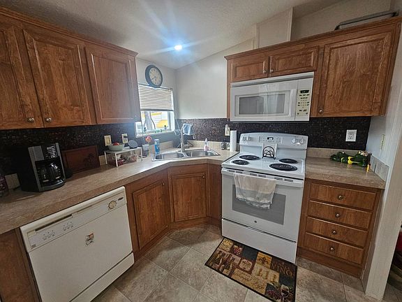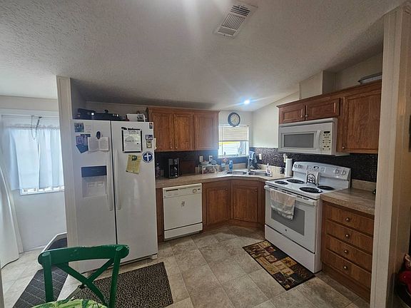2011, 24x36, 864 square foot mobile home located in Hillcrest Mobile Home Park, Clearwater, Florida. The exterior features a spacious double carport with plenty of extra parking, a large front porch with railings, a back porch, a custom shed, shutters, gutters, a brand new 2025 shingled roof, and an AC with heat package recently serviced and up to date. The home also includes exterior shutters throughout. The interior boasts a kitchen with beautiful wood cabinets, a custom sink and faucet, custom tile backsplash, GE stove, microwave, Whirlpool dishwasher, Frigidaire refrigerator, Whirlpool washer and dryer, and vinyl flooring. There is plenty of storage space with additional closets above the washer and dryer. The living room features laminate flooring, a custom fan, and drywall ceilings throughout. Both bathrooms have vinyl flooring, laminate countertops, attractive vanities with modern sinks and faucets, and tile backsplashes. Bedroom one is carpeted with a walk-in closet, while the master bedroom features carpet, a custom fan, a walk-in closet, and a private entry to the master bathroom, which also connects to the common area for convenience. It is important to know that during the last hurricane, as well as past hurricanes, our property was not affected. A large concrete wall sits on the opposite side of our street, shielding the front of our home from high winds and flying debris. Beyond that wall is a large commercial building that further protects our property, which is why the storms did not cause us any damage. Since the last storm, we have replaced our roof simply because it was dated, not from storm-related issues. We live on a very peaceful, quiet street, which makes the location both safe and serene. Hillcrest Mobile Home Park offers a beautiful community with a clubhouse, heated pool, shuffleboard courts, social activities, and well-maintained grounds. All serious buyers must have a $1,000 security deposit and pass a background check with the park. No felonies, no evictions, no bankruptcies, and no foreclosures within the last five to seven years. Rental verification, provable income, and a 620 or higher credit score are required. In cases where income or credit is an issue, park management may allow prepaid lot rent for three to twelve months on a case-by-case basis. Hurry, this home will not last.