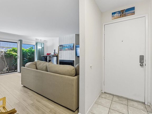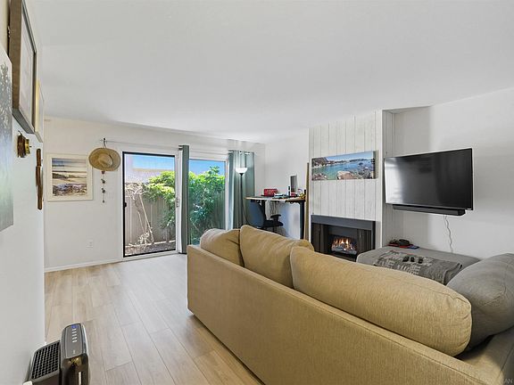Highly updated cozy condo located in the City of San Diego neighborhood of Pacific Beach (PB). Located right off of Grand Avenue across the street from Mission Bay High School. The location provides close proximity & enjoyment of the attractions to PB without the hassle of traffic. Easy freeway access. Private patio & 2 assigned parking spaces: one covered & the one uncovered. Exterior storage located at the covered parking spot. Dual pane windows throughout & sliding glass door; very quiet when all are closed. Brand new luxury vinyl flooring installed in living room of March 2023. Fully functioning gas fireplace. Kitchen & bathroom boasts easy close drawers & cabinet doors as well as new GFCI's installed. Updated kitchen appliances. Plenty of interior closet space. Community laundry room with 3 washers & 3 dryers (Coin or App operated). Below ground pool and jacuzzi. Very quiet complex. Come see this PB Pearl before it’s picked up!