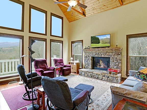NORTH GEORGIA MOUNTAINS HOME WITH CLEAR BIG VIEWS OF BRASSTOWN BALD, THE HIGHEST POINT IN GEORGIA!! This 2 bedroom/2 bathroom home offers amazing multi-ridge mountain views, including Brasstown Bald, an open floor plan, great room with cathedral wood ceiling with exposed beams, stacked stone gas log fireplace, wood floors, lots of glass to enjoy the big views, kitchen with stainless appliances & granite counters, large pantry, master bathroom with granite counters, guest bathroom with garden tub, large storage area in the crawl space and a 2 car carport.