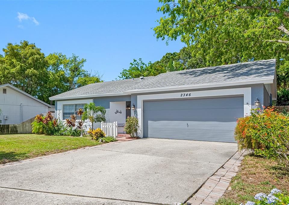 Welcome to a move-in-ready delightful 2-bedroom, 2-bathroom, pool home nestled in the highly sought-after Beacon Groves neighborhood in beautiful Palm Harbor. This property offers a perfect blend of comfort, style, and functionality, making it an ideal place to call home. As you step inside, you'll immediately notice the warmth of the living space which is currently set up as a dining room. The family room is highlighted by a cozy wood burning fireplace and French doors that leads you to the patio. The open floor plan seamlessly connects the living room, dinette area, and kitchen, creating an inviting atmosphere for family gatherings and entertaining guests. The kitchen includes wood cabinets, granite counter tops, a new microwave and dishwasher, making meal prep and clean-up a breeze. The French doors from the dining area opens to a spacious covered porch, perfect for al fresco dining or relaxing with a morning cup of coffee. One of the standout features of this property is the enclosed pool and pavered pool deck. Whether you're taking a refreshing dip on a hot Florida day or lounging poolside, you'll love spending time in this private oasis. The brand-new panel for pool equipment ensures hassle-free maintenance, and the new Rainbird irrigation controller keeps the landscaping looking its best year-round. With a two-car garage and a big backyard, this home offers ample space for storage and outdoor activities. The new HVAC system installed in 2022 ensures year-round comfort and energy efficiency. This neighborhood is zoned for excellent Palm Harbor schools, and it is in a non-evacuation zone. Palm Harbor's convenient location provides easy access to beaches, parks, shopping, and dining, offering the quintessential Florida lifestyle. Don't miss the opportunity to make 2346 Orangeside Road your new home.