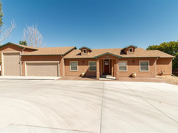 Unique Redlands ranch style stucco home on 1 irrigated acre (2 shares). Located on small street with minimal neighbors. No HOA. 4 beds 3 baths plus den. Open floor plan. Large master suite and bathroom includes jetted garden tub custom shower big walk in closet. Cozy wood burning stove. Big laundry room. Storage galore. Backyard is beautifully landscaped small creek and trees on north end of property. Huge 6 car garage with inside RV parking. Indoor and outdoor dog run. Minimal maintenance.