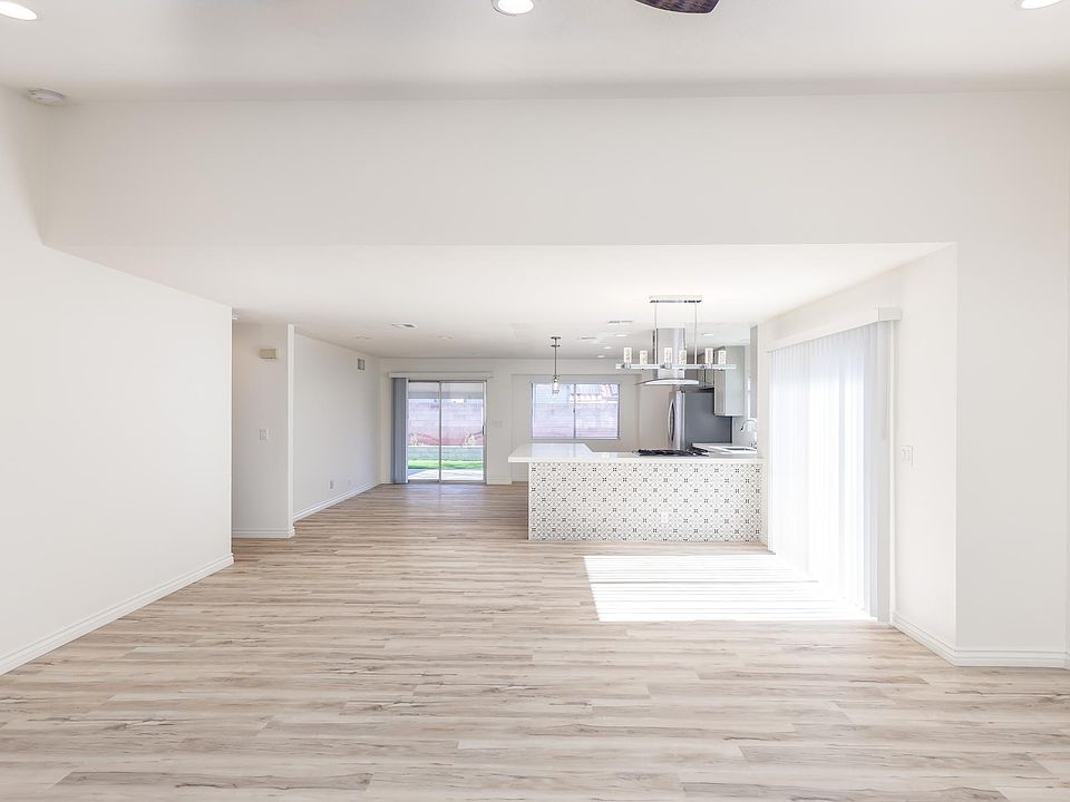 RENOVATED with fresh paint, new waterproof luxury vinyl flooring and upgraded kitchen and bathrooms! This open floorplan with high ceilings and a fireplace is a dream rental that feels big and spacious! The kitchen is open with stainless steel appliances, quartz countertops, and lots of cabinet space. The backyard has a covered patio, freshly laid turf, red rock and plants for easy maintenance. Bathrooms are modern with countertops, sinks and faucets. The bedrooms all have ceiling fans and new blinds. This is an No HOA neighborhood close to restaurants and shops! Listed and managed by Owner Licensee (Winky Wu s.0184240 Evolve Realty) Tenant pays utilities, no smoking is allowed. Pets are welcome! Must make 3x the income or can show sufficient savings. Call with questions, thank you!