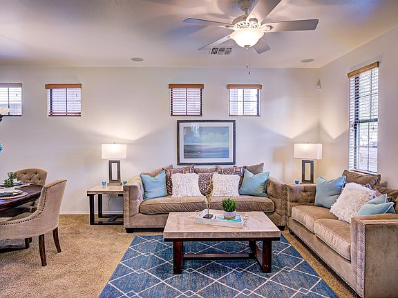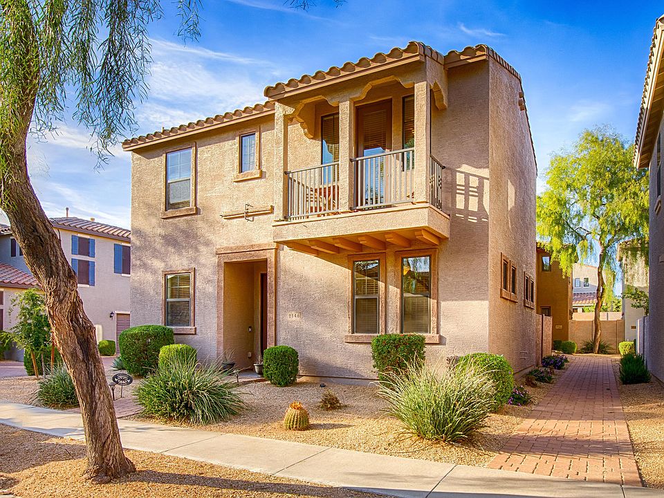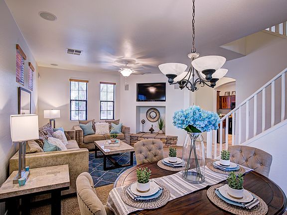 STUNNING HOME IN GATED COMMUNITY! This is the one! Floorplan features 3 bedrooms, 2.5 bathrooms, large living room with dining area. The master suite offers a walk-out balcony, large closet, and master bathroom with separate garden tub and shower. Upgrades through out the home include newer water softener, gas dryer hookup, and huge pantry. Fully landscaped backyard offers artificial turf for easy maintenance, and miniature fruit trees. Community features include a children's playground, meticulously maintained common areas, community pool, and front yard landscaping is included. Close to all major shopping, dining and entertainment. A MUST SEE!!!