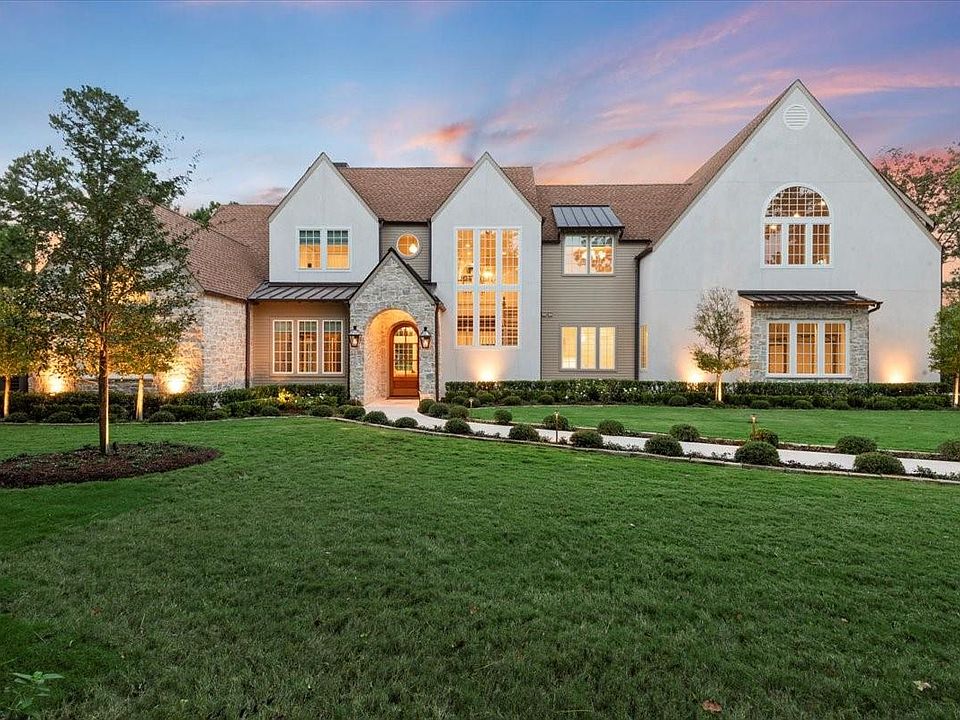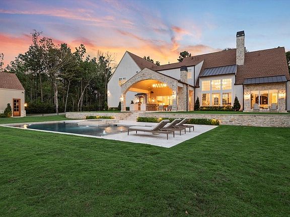 This custom-designed masterpiece, inspired by the charm of the European countryside, is set along a tranquil lakefront and blends warmth, sophistication, and modern comfort in one of the area’s most desirable neighborhoods. Storybook architecture, copper lanterns, and manicured grounds create an unforgettable first impression. Inside, soaring ceilings, sunlit living spaces, and elegant details offer timeless appeal. The gourmet kitchen flows seamlessly into open-concept living and dining areas, perfect for entertaining. White oak floors, arched doorways, and curated finishes enhance every space. A massive private gym adds to the home’s luxury and lifestyle appeal. Outside, enjoy a stone fireplace, outdoor kitchen, and travertine patio overlooking a resort-style pool, gas fire-pit and peaceful lake. Thoughtfully crafted, this home offers not just a place to live—but a lifestyle grounded in serenity, design, and connection to nature.