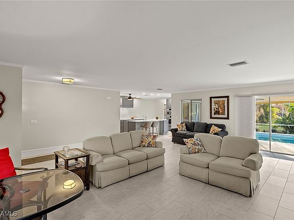 GULF ACCESS VIA NEGHBORHOOD BOAT RAMP!!! Move-in ready Pool home, Corner lot, western exposure, situated in a waterfront community with a neighborhood, park, gazebo, and even a boat ramp. New roof in 2023, as well as being completely remodeled. The master suite features access to the pool area and has its own en-suite bathroom with the walk-in closet. The guest bedrooms are split, allowing for a privacy for visitors. The main living area is oversized for this size home allowing for many seating, arrangements and/or room for a large dining table. Kitchen upgrades galore, Bosch appliances, oversized island with quartz counters and custom wood cabinetry. Window treatments are custom Hunter Douglas motorized Designer Screen Shades with skyline gliding panels and precious metal blinds. The seller has done all of the hard work so you can just move in and enjoy your Florida pool home.
