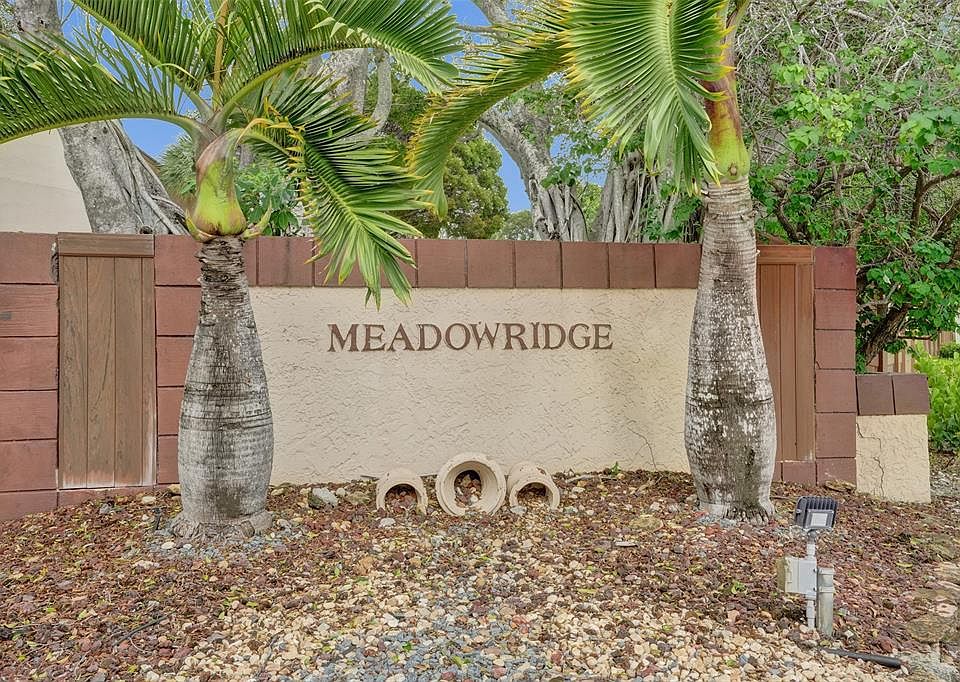 Beautiful 2-bedroom 2-bath corner unit on the second floor in the desirable Meadow Ridge West community. Large porcelain tile & vaulted ceilings create an open, airy feel. The updated kitchen features maple cabinetry, granite countertops, a garden window & stainless steel appliances. Spacious living & dining areas include a built-in buffet & open to a large screened-in patio. The primary suite includes an updated bathroom, California closet, convenient pull-down attic storage w/flooring & shelving & its own private patio. The secondary bedroom & bath are also updated. The washer/dryer in the unit. The building has a 2024 roof. Amenities include a pool, hot tub, covered BBQ and seating areas, shuffleboard, clubhouse w/full kitchen, fitness center, guard-gated patrol at night.