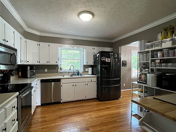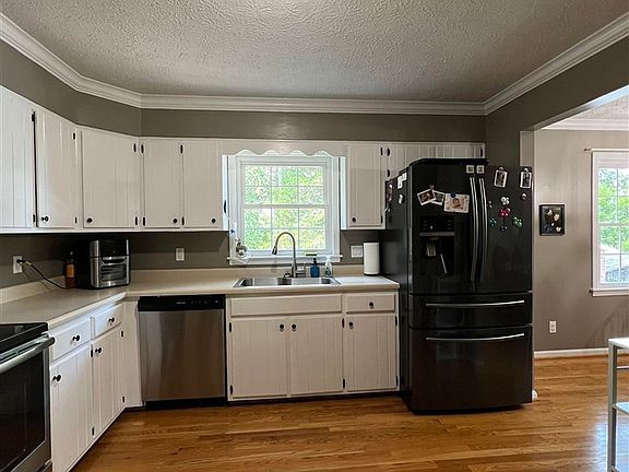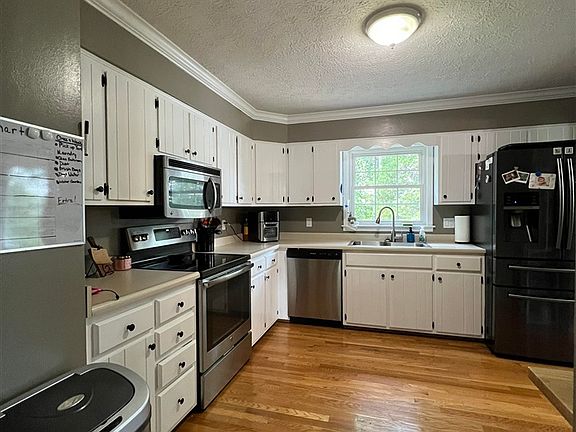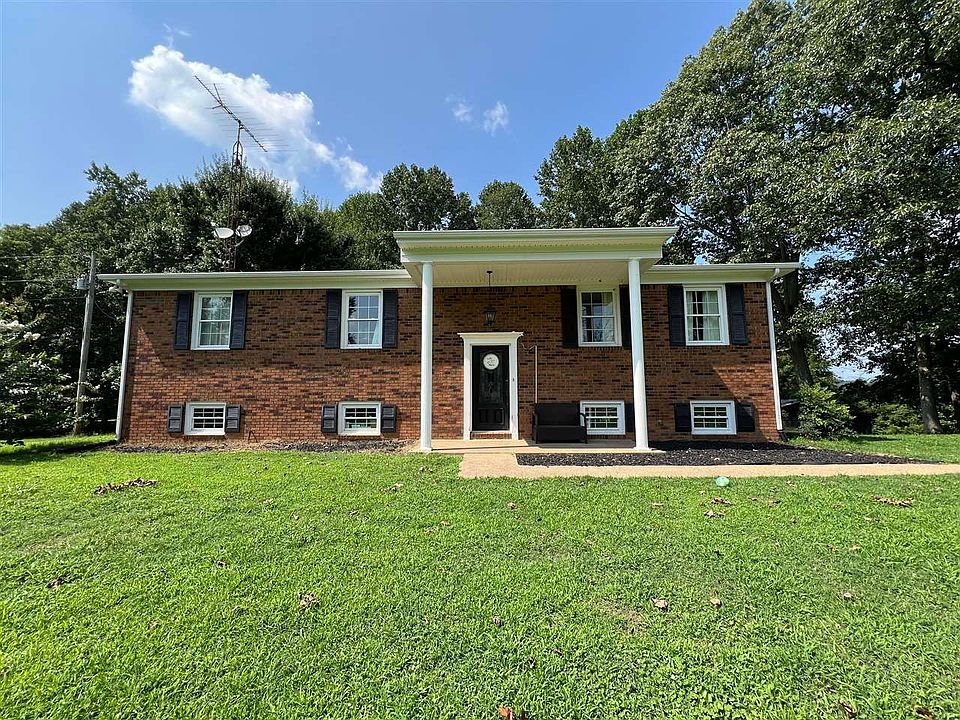 Lovely 5 bedroom 2.5 bath brick home sitting on 5 acres in Grayson County only 10 miles from Rough River and Pine Knob Theatre. This home has approximately 2362 square feet; approximately 1377 on the main level and approximately 985 finished square feet in the walkout basement. The main level offers 3 bedrooms, 1.5 bath, living room, kitchen and dining room. The walkout basement has 2 bedrooms, 1 bathroom, utility room, storage area and a 1 car attached garage. The entire interior of the home has been painted including the cabinets in the kitchen, new flooring throughout the basement 2024, new dishwasher and refrigerator, changed out most of the lighting including adding ceiling fans in some of the rooms. New carpet in two of the rooms on the main level August 2024, kept the plastic on it to protect it. There is a small storage room in the basement that they also use as storm shelter when needed. One car attached garage and a one car detached garage, barn, and a small cabin with electric that could be used as a man cave or a playhouse for the kids. With the 5 acres it offers you have plenty of room to roam, stretch out, and just sit around a fire pit and enjoy the outdoors. Call Today for a private viewing!