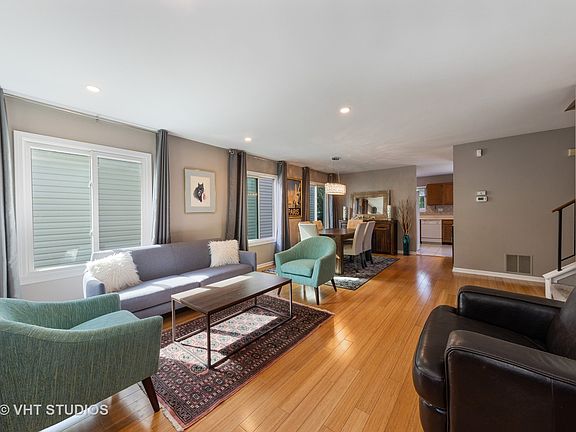 Move right in to this welcoming and bright 3 bedroom, 2.1 bathroom, 2 story in Green Trails. Open formal living and dining room with bamboo flooring and bar area. Kitchen with back splash and table space opens into family room. Sliding glass door leads out to patio and fenced back yard. Master bedroom suite with private bathroom and walk-in closet. 2 additional bedrooms and large hall bath complete 2nd floor. Unfinished basement allows for ample storage or bring your decorating ideas and finish for additional living space. Come and see all that Green Trails has to offer. Naperville District 203 schools.