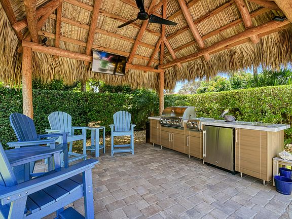 Live the Florida lifestyle in this classic 3-bedroom, 2-bath CBS home, beautifully upgraded for modern living! Nestled on a spacious 1/3-acre lot along the highly coveted Prosperity Farms corridor and just 2 miles from the beach, this property offers the perfect blend of comfort, style, and convenience. Step outside to your private oasis featuring a sparkling pool, Tiki Hut, and fully equipped outdoor kitchen--ideal for entertaining or relaxing year-round. Inside, the remodeled kitchen boasts quartz countertops and pull-out cabinet shelving, while both bathrooms have been tastefully updated. Additional highlights include: Storm-ready with whole-house generator + impact windows/doors, Epoxy garage floors with built-in cabinetry, New AC (2024), Plantation shutters and flush-mount LED ceiling lights throughout,