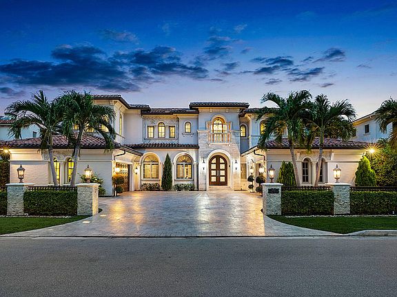 This exquisite estate offers a premier Intracoastal location defining luxury waterfront living in the prestigious Royal Palm Yacht & Country Club. With awe-inspiring vistas, marble floors, and lavish amenities, this extraordinary 5-bedroom haven is a testament to unsurpassed craftsmanship and refined aesthetics.Unmatched features and elegance span over 8,000 sq ft on two floors. This estate offers a gourmet open-air kitchen, 7-seat home theater, distinguished study, cozy den with ensuite, and elevator access. The spacious master wing provides a sitting nook, exercise room, His & Her spa-like bathrooms, boutique-style closets, and mesmerizing waterway views from the covered balcony.Step beyond the elegance indoors to discover a completely renovated resort-style pool with a raised spa and captivating fire bowls. It's an oasis that invites you to bask in luxury and serenity. You'll revel in abundant natural light all day with coveted east exposure. For water enthusiasts, a private dock awaits, providing swift access to the Intracoastal and the ocean inlet.