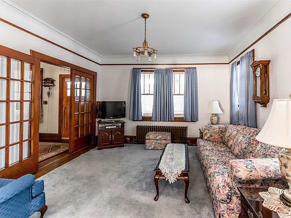 3 Bedroom, 1.5 Bath Classic Colonial Set On Huge(50 x 250) Property. House Features Front Heated Porch, Beautiful Entry Hall With Mahogany French Doors Leading To Living Room, Mahogany French Doors Leading To Dining Room, Eat-In kitchen With Pantry And Hall To 1/4 Bath. 9 Foot Ceilings And Wood floors Through Out. 2nd Floor Has 3 Nice Size Bedrooms With Large Closets, Full Bath And Large Attic For Storage. Basement Is Super Clean. New Roof, Windows, Driveway. 2 Car Det. Garage Close To LIRR.