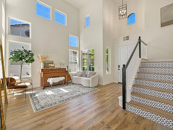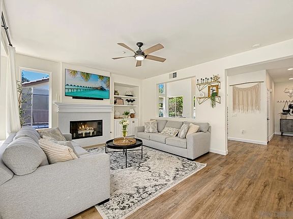 Welcome to this beautifully maintained home offering both style and functionality in every corner! Pride of ownership and high-end design throughout, this home offers 4 spacious bedrooms upstairs and a flex room downstairs, a layout providing ideal versatility for a home office, guest room, playroom, or all of the above. Inside, enjoy vaulted ceilings, ample natural light in every room, and upgraded finishes throughout such as LVP flooring throughout all common areas (carpet only in secondary bedrooms). The primary suite boasts motorized window coverings, a stylish barn door leading to the en-suite bath, and a large walk-in closet. Ample storage available in the three-car garage and functional laundry room + sink. The home is EV-ready with electric car charger capability, and includes the bonus of owned solar for added energy efficiency. Enjoy golf course views and various entertaining spaces in the backyard, offering low-maintenance living with turf in the backyard, a shaded pergola, perfect for outdoor dining, and a beautiful, serene sitting area complete with a privacy wall. This backyard is perfect for both relaxation and play! Located in the highly desirable golf gated community, Rancho San Pascual, offering tons of amenities for entertaining including a community pool, spa, park, clubhouse, basketball court, pickleball, and more. Residents initiate community events for all neighbors to enjoy and walk to the well loved K-8 school, San Pascual Union Elementary, creating a connected community.null