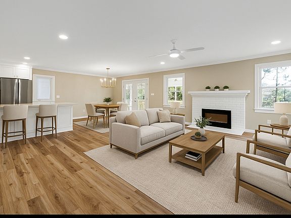 Step inside this fully remodeled ranch-style home offering 3 spacious bedrooms and 2 full baths. The open floor plan is enhanced by wide-plank luxury vinyl plank flooring, creating a seamless flow throughout the living spaces. The heart of the home is the stunning new kitchen, complete with crisp white cabinets, quartz countertops, a designer tile backsplash, and a large center island perfect for gatherings. Enjoy cozy evenings by the fireplace with remote control convenience.Both bathrooms have been completely renovated, and brand-new windows fill the home with natural light. The expansive 200 sq. ft. screened porch provides a perfect spot to relax and take in views of the fenced backyard. Washer and Dryer included! A tree-lined setting, and the peace and privacy of a cul-de-sac location. This move-in ready home blends modern updates with comfortable living. Close to shopping, restaurants & highways!