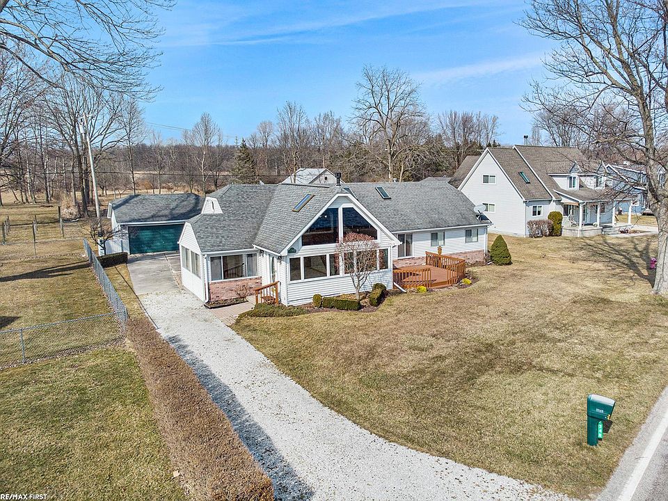 Spectacular sunrises over the Canadian shore and great freighter views from this spacious home located north of San Souci. 100' on river with dock and 20,000lb boat hoist and 1250lb davit at the seawall. Over an acre of land with beautiful landscaping inc. perennial flowers, apple, plum, pear, willow and black walnut trees and large vegetable garden area. This home has had many of updates inc. a newer furnace and A/C Unit, door walls and newer bathroom with beautiful ceramic tile. Enjoy entertaining with the open kitchen, dining and great room area with cathedral ceiling in great room with gas fireplace. Bedrooms, bathrooms and laundry all on first floor. Bonus space in the loft area for office/den or hobby room. Large decks on the front and back of the house. Don't wait... homes in this location don't come on the market often with this size of property! Plenty of room to add a pole barn.