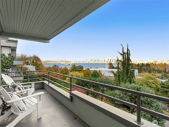 Welcome to City Lights! Stunning end-unit 2 bed + office / 2 bath condo with panoramic views of the Seattle skyline, Elliott Bay & Cascades. Spacious open layout with tall ceilings, gas fireplace & wall of windows. Two large view decks—one off the living room & primary suite, plus a 2nd deck with gas BBQ hookup off the dining room. Primary features ensuite with jetted tub & walk-in closet; 2nd bedroom includes Murphy bed and double closet. Several updated appliances, tankless water heater & hydronic furnace, new flooring & in-unit laundry. Includes 1-car garage + 2nd parking space, ample storage, & no stairs for access. This well-run, private, gated-community is close to Alki Beach & WS Bridge restaurants, trails, commuting, & Water Taxi.