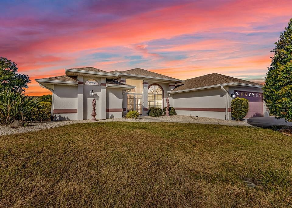 Welcome home to this spacious and inviting 3-bedroom, 2-bath single-family Pool home located in the highly desirable Deep Creek – Section 23 community. Thoughtfully designed on a single level, this home offers over 2,000 square feet of comfortable living space, ideal for everyday living and entertaining. The open, split-floor plan creates a warm and welcoming feel while providing privacy, with generously sized bedrooms—each featuring walk-in closets. Step outside to your screened lanai and pool, the perfect space for hosting gatherings or relaxing poolside while enjoying Florida’s natural surroundings. The home sits on a .23-acre lot with eastern front exposure, allowing for beautiful natural light throughout the day. Offered furnished, this property makes moving in easy—whether you’re looking for a full-time residence, seasonal getaway, or investment opportunity. Additional highlights include an attached two-car garage, durable stucco and concrete construction, and Flood Zone X, meaning no flood insurance is required by lenders. Deep Creek is a deed-restricted community, helping maintain its well-kept appearance and long-term value. Residents enjoy low annual HOA fees, public utilities, pet-friendly living, and a convenient location close to shopping, dining, schools, and major roadways in Punta Gorda. This well-located home offers comfort, convenience, and value at an attractive price point. Don’t miss your opportunity to make it yours.