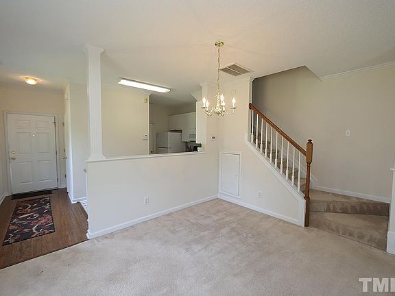 Fantastic Hedingham Foxcroft Lake Waterfront 3 BR/2.5 Bath Duplex Style Townhome w/ front entry Garage. Freshly Painted and New Kitchen Flooring. Family Room Gas Fireplace Surrounded by Built In Bookcases with Mantel and TV Nook. Owner's Suite with Water View & Walk In Closet. Open Family/Eating/Kitchen Floor Plan on Main. Refrigerator Conveys. Large Front Bedroom with Fabulous Window Wall. Front & Third BR with Double Door Closets. Laundry Room on Second Floor. Washer & Dryer Convey. Great Storage. Roof Replaced 2020 by HOA. Large Open Field to the Right Offers Privacy and Beautiful Views & Nature. Enjoy the Popular Amenities of Hedingham Community. Convenient to all Shopping and Eats off US 401, Capital/US 1 and Located Between 440 and 540.