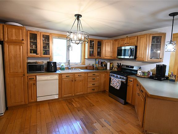 Welcome to this spacious home offering timeless charm and modern convenience, nestled on 5 park-like acres. Enjoy the serene setting and expansive open spaces where you can create your own private retreat, while still being only a short drive to local amenities. This generously sized home offers ample space for your whole family to spread out, ideal for entertaining and family gatherings. The first floor boasts a grand kitchen, formal dining area, an oversized living room, one bedroom, a full bath, a laundry room, and 2 enclosed porches at both the front and back of the home. Upstairs you will be greeted by 3 considerable bedrooms, each containing their very own walk-in closet. This floor also provides a half bath and an additional small room, perfect for a nursery or office space. Step outside to find a generous lot with plenty of yard space, 2 garages, one with shop space, and a shed for plenty of storage space for all your outdoor needs. The home had a total roof replacement in July of this year. Oil tank in basement is also brand new. Home was just inspected and ready for OPWDD in-home family care. Don't miss your chance to own this gorgeous home.