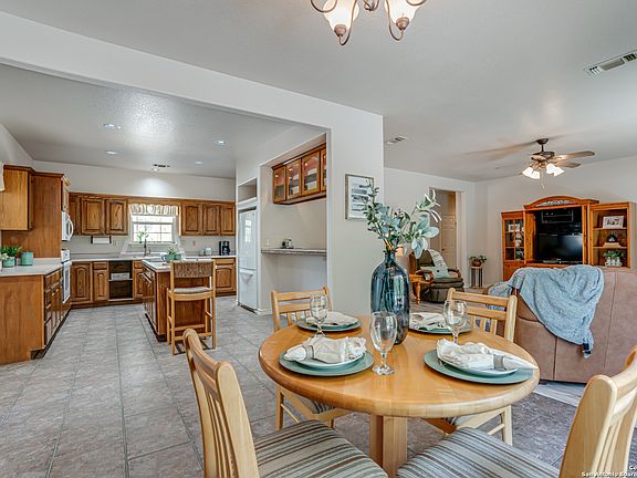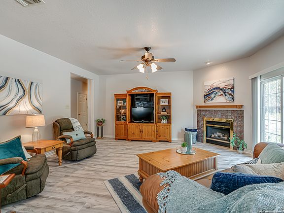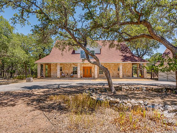 Wow! Take a look at the beautiful 3 acre home, breath taking once your enter the gate. This 4 bedroom 3, 1/2 bath hill country home has all the charm, serenity, peacefulness that you would expect in the country. The rooms are large and spacious. In addition to the beautiful home has a detached garage with guest suite and full bath. Seller is an avid gardener so there is high fence in the back, the land was manicured so beautifully people would stop by to see if they could take pictures in her yard, we shared some photos for you to see so when we do get rain you will see how beautiful the land is. Wait till you see the large sports Keith Zars Pool. The River Park this community has is breathtaking. This is a home you will love for years to come.