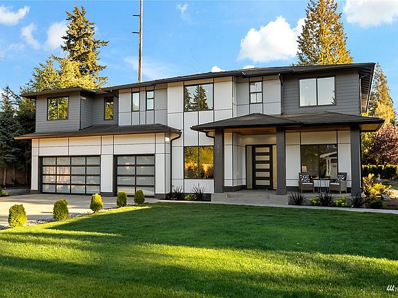 Exquisitely designed modern new construction home on expansive grounds w guest cottage 5458 total sq ft. Custom-Built Bruce Farr Estate boasts opulence&sharp designs.Light-filled floor plan enhances comfortable living&entertaining wEuropean Wide Oak Floors.Soaring ceilings&linear fireplace provide seamless balance in true greatrm.Epicureans eat-in kitchen w Acorn cabinets, Wolf app&large custom pantry leading to outdoor oasis, covered patio on serene,fully fenced property open from3sides.Prodigious Primary Ste, a refined luxe retreat.3wide garage w EVchargers.2bed Guest Cottage w endless potential, multi-gen living, office,future rental&more.Nestled on tranquil road in heart of Bellevue!Near schools, city amenities,Amazon,Microsoft,I90&405