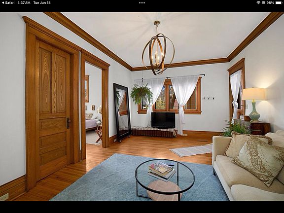 Beautiful furnished rental month to month. Hardwood floors. Queen bed. Closets, one with a built in dresser. Natural wood trim and crown moldings. Location is convenient to hospitals, downtown and university. Enjoy a historic space on a tree lined street. Quiet block. Parking is off street. All utilities and internet included. Pets allowed. Off street parking if needed. Quiet large older home in a charming historic district with separate entrance from the main house.