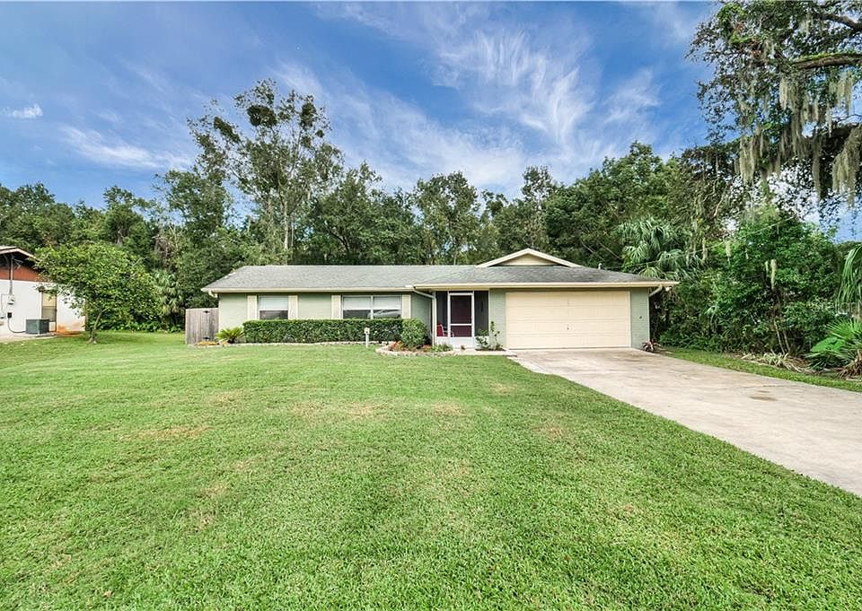 Welcome home to Debary! This 3 Bedroom, 2 Bathroom, single story, POOL home is move-in ready! The classic layout, split plan home features a large formal living room, formal dining room, family room, and bonus Florida room. All living areas and bedrooms feature laminate flooring - there is no carpet in this low maintenance home. Rear Florida/Bonus room leads out to the screen enclosed pool area, with serene forest views behind the home. Rear yard is fully fenced - move in ready for pets. Large inside utility room is accessible from the spacious 2-car garage. Comfortable nearly quarter acre lot provides plenty of privacy, and the long, flat driveway makes accessibility a breeze. Quiet cul-de-sac street, and NO HOA! This property may be under audio/visual surveillance.