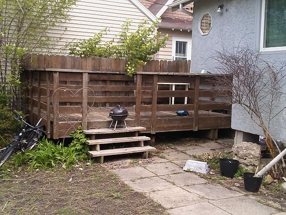 This home has 3 bedrooms and 2 baths. It has a kitchen with a seating nook, a full living room / dining room, an office and a small yard with a deck.