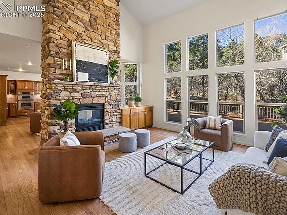 Here is an opportunity to own a home in the highly sought after Stonecliff community. This well taken care of home is ready to move into before the holidays. On the main level you will find the primary suite, a spacious office, the formal dining room, and the living room with 20' ceilings. A wall of windows drenches the living room and kitchen nook with sunlight. The kitchen is open in design and includes granite counter tops, a gas cook top, vaulted ceilings, under cabinet lighting, and is the perfect place to gather and entertain. Steps away from the kitchen is the dining nook area that walks out the back deck for easy bbq access. A double sided fireplace with stone detail separates the living area and kitchen while still keeping an open feel. The primary bedroom is generously sized, includes a fireplace with tile detail, and walks out to the back deck for you to enjoy the built in hot tub. This bedroom has an attached private bathroom with a large soaking tub, a cozy fire place, double vanities, and walk in closet. On the upper level there 3 bedrooms to include a jr suite with its own private bathroom. In the basement there is a massive recreation room, a full bathroom, a nicely sized bedroom, and a flex room that can be used for a gym or another office. There is a decent amount of unfinished space that makes for great storage. Steps away from the front door is the office and is the perfect place to work from home. The entire interior of the home has been given a fresh coat of paint. Brand new plush carpet and pad was recently installed. Your insurance company will be happy to hear that a new class 4 roof with high impact shingles was completed in November. Also the entire home was recently completed with acrylic stucco. This home is positioned nicely on a flag lot, creating a great sense of privacy. The back yard is easy to maintain and is lined with a significant amount of scrub oak. Set your private showing today!