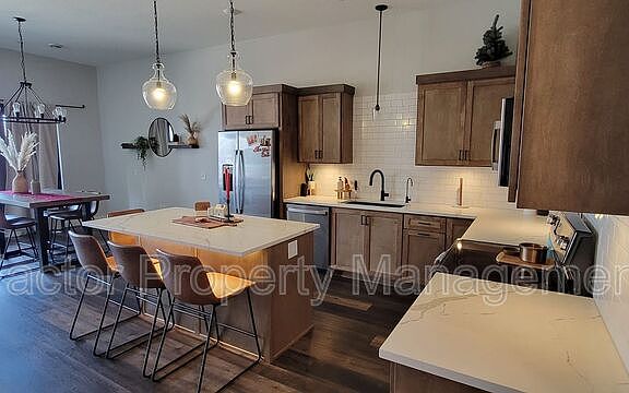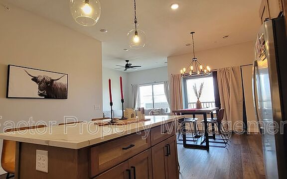 This is a beautiful and unique one-bedroom unit in Lower North Mankato. This modern apartment, built in 2022, features a large balcony and windows overlooking Belgrade Avenue. The kitchen boasts natural stone countertops, custom cabinetry, luxury vinyl plank flooring, under cabinet lighting, and a center island for convenient meal preparation and perfect space for entertaining. This apartment boasts an in-unit washer and dryer and multiple ceiling fans and is located in a security building. Located with easy access to highway 169, and within walking distance of restaurants, bars and shopping in lower North Mankato. Tenants pay all utilities. One pet under 40 pounds allowed. Landlord takes care of lawn care/snow removal. Background and credit check and rental references required. Application Fee is per tenant. Must provide proof of renter's insurance. Equal Housing Opportunity. Amenities: Natural Stone Countertops, In Unit Washer and Dryer, Easy Highway Access, Security Building, Center Island, Under Cabinet Lighting, Ceiling Fans, Tiled Shower, Balcony