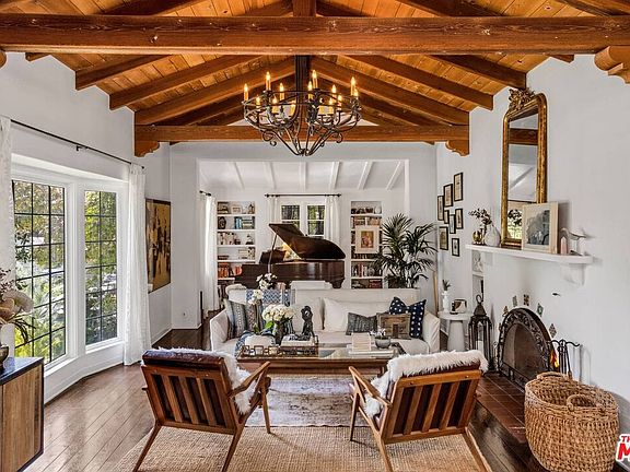 Partially Furnished. This vintage 1930s Spanish, sited on one of Westwood Hills' prettiest avenues, emanates warmth and meaningful character at every turn. Highly functional with its three bedrooms and three bathrooms, this soulful home will also surely enchant and retains its beautiful, original architectural details such as carved wood beams, colorful tile and wide-planked wood floors.A formal entry opens to a rich, vibrant living room graced by a vaulted, rustic, wood-beamed ceiling and a romantic fireplace. The library alcove has the original, inset bookcases. Also off the entry is a lovely formal dining room.The open, recently updated cook's kitchen has a vaulted, wood-beamed ceiling and all the upgrades