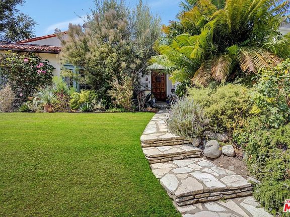 custom cabinetry with many built-ins, Carrara marble countertops, a work-station island, a farmhouse sink and the pice de rsistance, a La Cornue cooking range. There's a bar for casual dining overlooking a sun-soaked loggia which gracefully opens to the family room and to the backyard.On the main level find two bedrooms each with dedicated baths. Upstairs, there's a sunny primary suite with large closet space, a full bathroom and sweeping views across the wooded neighborhood. Outdoors, there is a large stone and brick patio, perfect for al fresco entertaining under the sun and stars. Beyond is an expansive grassy area with a vast kids play area and a lounging deck. The landscape is mature and lush. Currently, the two-car garage has been converted to a music studio. This special home is located in the coveted Warner Avenue School District and in close proximity to UCLA and to the fine shopping and dining in nearby Westwood and Brentwood Villages.