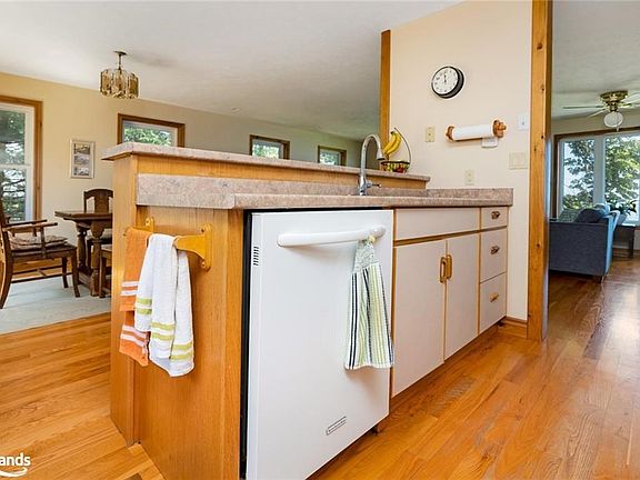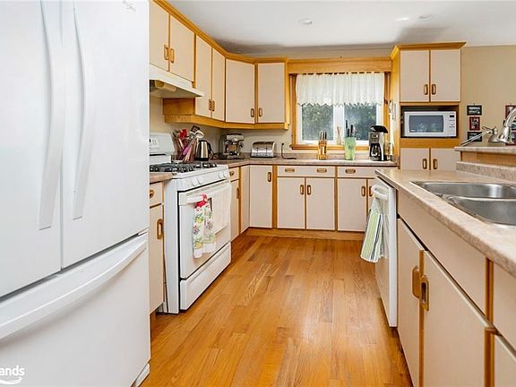 Situated on a quiet road, with 100 feet of waterfront and sandy beach, this property is within 10 minutes from Blue Mountain and the Village, private ski clubs, the Georgian Trail, 3 golf courses, shopping in Collingwood and many other local amenities.The 2400 square foot customed built home offers 5 bedrooms, 3 bathrooms, open concept living and a sunroom that has panoramic views of Georgian Bay. The primary bedroom, ensuite and WIC is located on the main floor. A detached double car garage has ample space for vehicles and storage for all the necessary toys and equipment when living near the water.The waterfron is ideal for many activities including, paddling, kayak and canoeing, kite sailing, fishing and swimming. For those interested in nature, a wide variety of birds and waterfowl make the Brophy's area their summer home.A large deck overlooks the water....a great place to entertain or relax. Brophy's Beach also provides residents with the most amazing sunsets all year long.Whether one is looking for a seasonal retreat or a full time home, this property would definitely fulfill that need! 2023-09-13