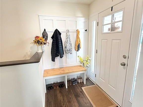 Welcome home to this charming ranch that shines with curb appeal and beautifully manicured landscaping. Inside, you’ll find 3 bedrooms and 2 full baths in a thoughtfully designed walkout floor plan that backs to common ground. Step into the entryway where a built-in cubby bench offers the perfect drop zone for coats and shoes. The open main living area impresses with a spacious open floor plan and vaulted ceilings, rich laminate floors, a cozy accent wall and plenty of natural light. The kitchen is a true gathering space with 42” dark cabinetry, a peninsula breakfast bar, stylish Argento Romano laminate countertops, and stainless steel GE appliances. Just off the kitchen, a low-maintenance composite deck extends your living space outdoors — perfect for morning coffee or entertaining friends. The private master suite is a retreat with a walk-in closet and bathroom featuring double sinks, an adult-height vanity, and a spacious 5-foot walk-in shower. The unfinished lower level with bath rough-in offers endless potential to customize.
