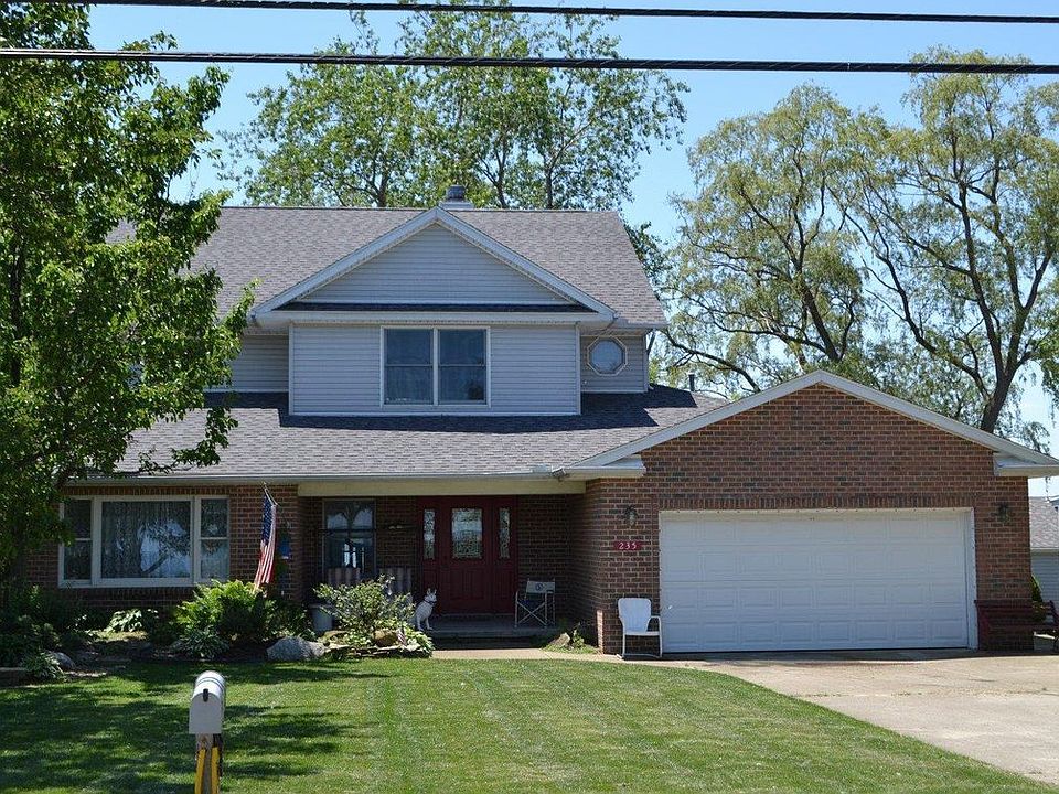 Wonderful lakefront home on a lake to bay lot. Seller tore the original home down and rebuilt a classic colonial home in 1995. Many quality features. Foyer with ceramic tile and crown molding. Large living room with a gas log fireplace, hardwood floors. Sun porch has great bay views. Exceptional white kitchen with island, pantry, planning desk, Corian counter tops. Imagine sitting at the kitchen table overlooking the Sandusky Bay. First floor master. Three bedrooms upstairs with a spacious family room area. 4-1/2 ft. crawl space. Roof replaced in October 2016. 2'x6' construction, high R-factor insulation. Second driveway is shared and is good access to the bay. Dock is portable, ramp is underwater now. Patio and Deck. Central air replaced in 2008. Room sizes, dates, and sq. ft. are approximate.