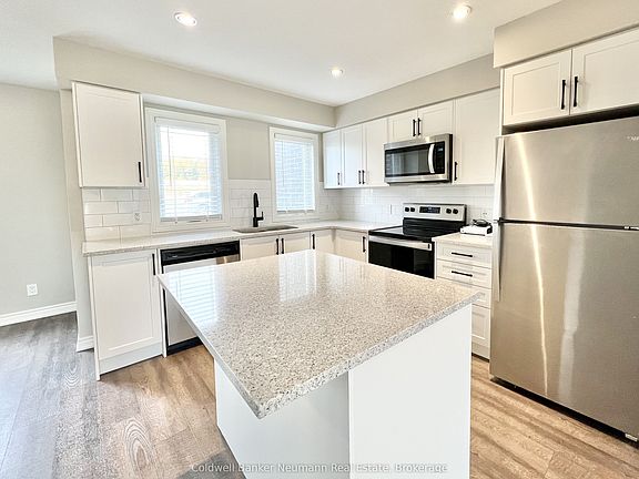Welcome to 235 Chapel Hill Drive #23, a modern stacked townhome in the sought-after Doon South community. Built just 3 years ago, this stylish home features 3 spacious bedrooms, 2.5 upgraded bathrooms, and a thoughtfully designed open-concept layout.Enjoy a completely carpet-free interior across both levels, with sleek vinyl flooring throughout. The bright living room is enhanced with pot lights, while the chef-inspired kitchen offers quartz countertops, a large island, upgraded soft-close cabinetry, subway tile backsplash, and stainless steel appliances.Perfectly located just minutes from Highway 401, Conestoga College, schools, parks, scenic trails, shopping, transit, and everyday amenities with city bus service nearby for added convenience.Complete with one parking space, this home blends modern finishes with practical comfort ideal for todays lifestyle. (Bonus: the space feels even larger in person!)